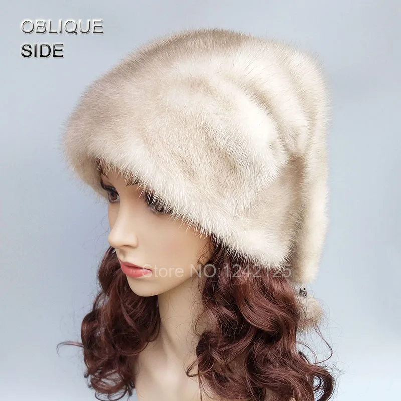 Beste Kopen Nieuwe winter vrouwen lady real Mink bontmuts Hoge end warme gift natuurlijke nertsen bont hoeden bekken cap Skullies mutsen Goedkoop