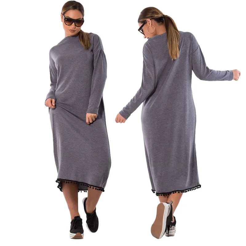 Beste Koop 5XL 6XL Kwasten Nieuwe Vrouwen Jurken Grote Maat Herfst Winter Warm Jurk Plus Size Vrouwen Kleding Casual Elegant Solid Vestidos Goedkoop