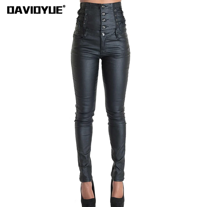 Beste Koop Lente Winter Lace Up Pu Lederen Broek 2018 Punk Hoge Taille