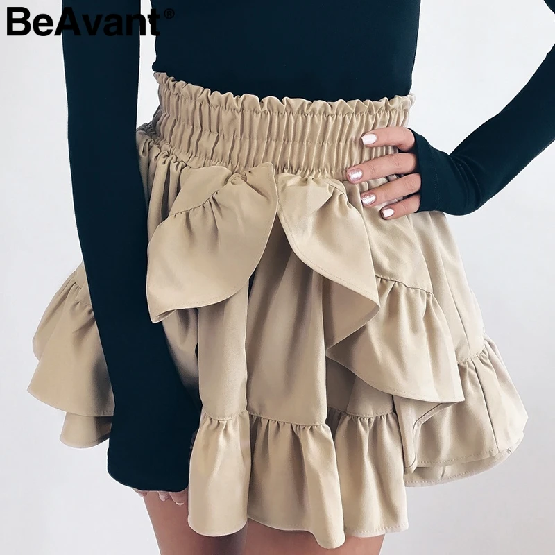 Kopen Goedkoop BeAvant Elastische taille cascading ruches korte rokken Vrouwen casual zomer rokken vrouwelijke Chic streetwear herfst rokken winter 2018 Prijs