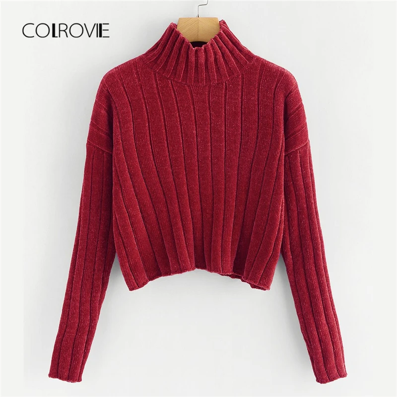 Kopen Goedkoop COLROVIE Zwarte Hoge Hals Crop Vrouwelijke Trui Dames Herfst 2018 Gember Meisjes Trui Winter Jumper Truien Vrouwen Kleding Online
