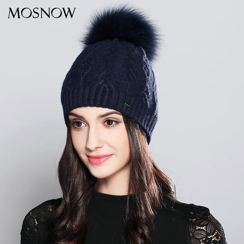 Kopen Goedkoop Beanie Voor Vrouw Winter Hoeden Elegante Wollen Gebreide 2018 Natuurlijke Wasbeer Bont Pom Poms Streep Hoed Vrouwelijke Skullies Mutsen # MZ710B Online