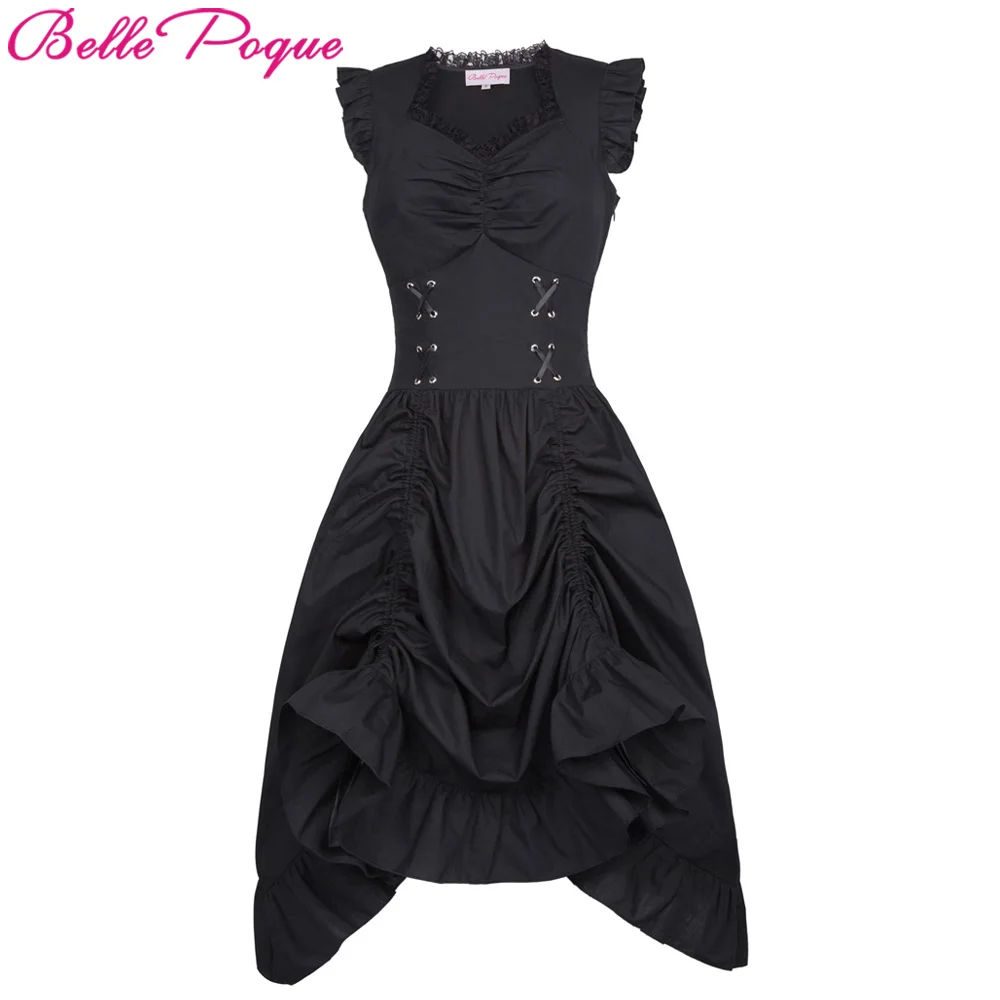 Kopen Goedkoop Belle Poque Vrouwen Mouwloze V hals Lace up Corset Ruffle Jurk 2018 Retro Vintage Steampunk Zwart Punk Gothic Victoriaanse Jurk Online