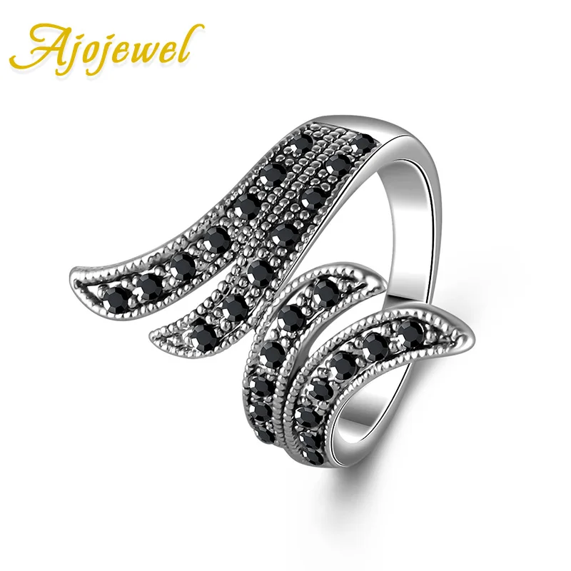 Beste Kopen Ajojewel Retro Zwart Rhinestone Angel Wings Vrouwen Vintage Ring Goedkoop