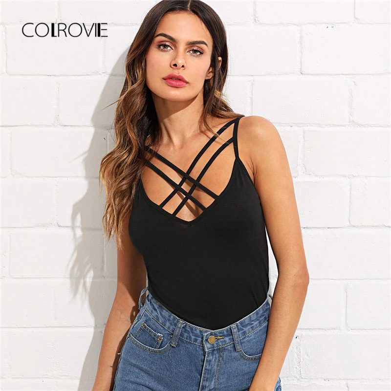 Home Goede Kopen COLROVIE Kriskras Vooraan Cami Top 2018 Nieuwe Zwarte Zomer