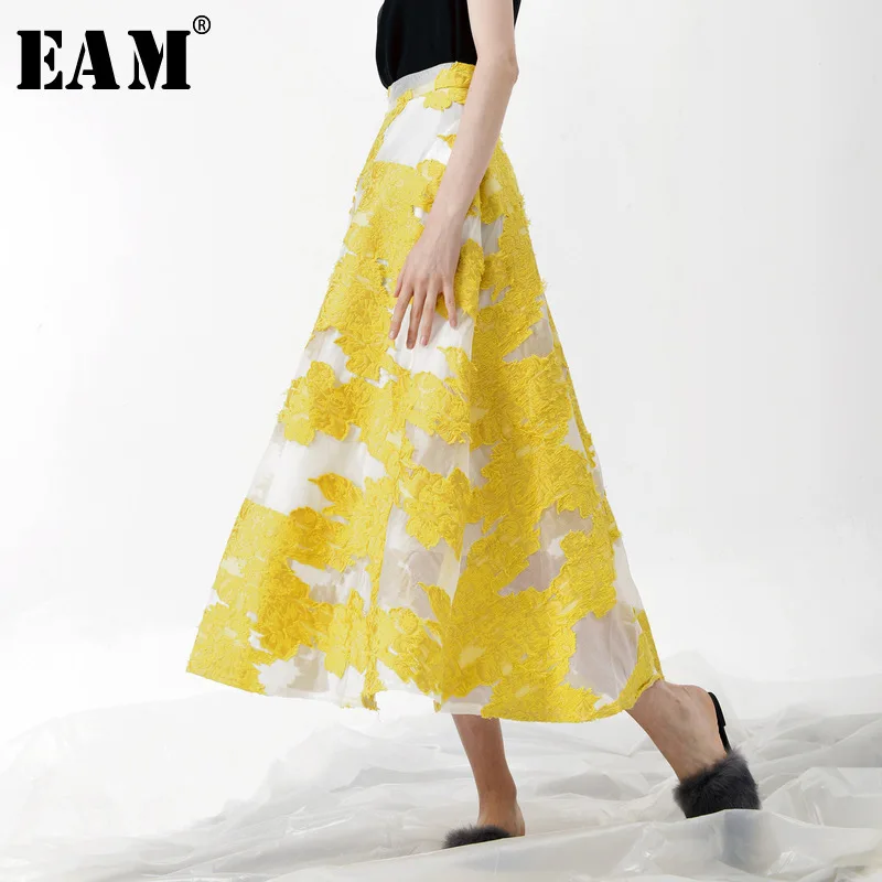 Kopen Goedkoop [EAM] 2018 Nieuwe Herfst winter Mode Tij Geel Patchwork Bloem Borduren Ritsen Eenvoudige All Match Dunne Vrouw Rok S618 Prijs